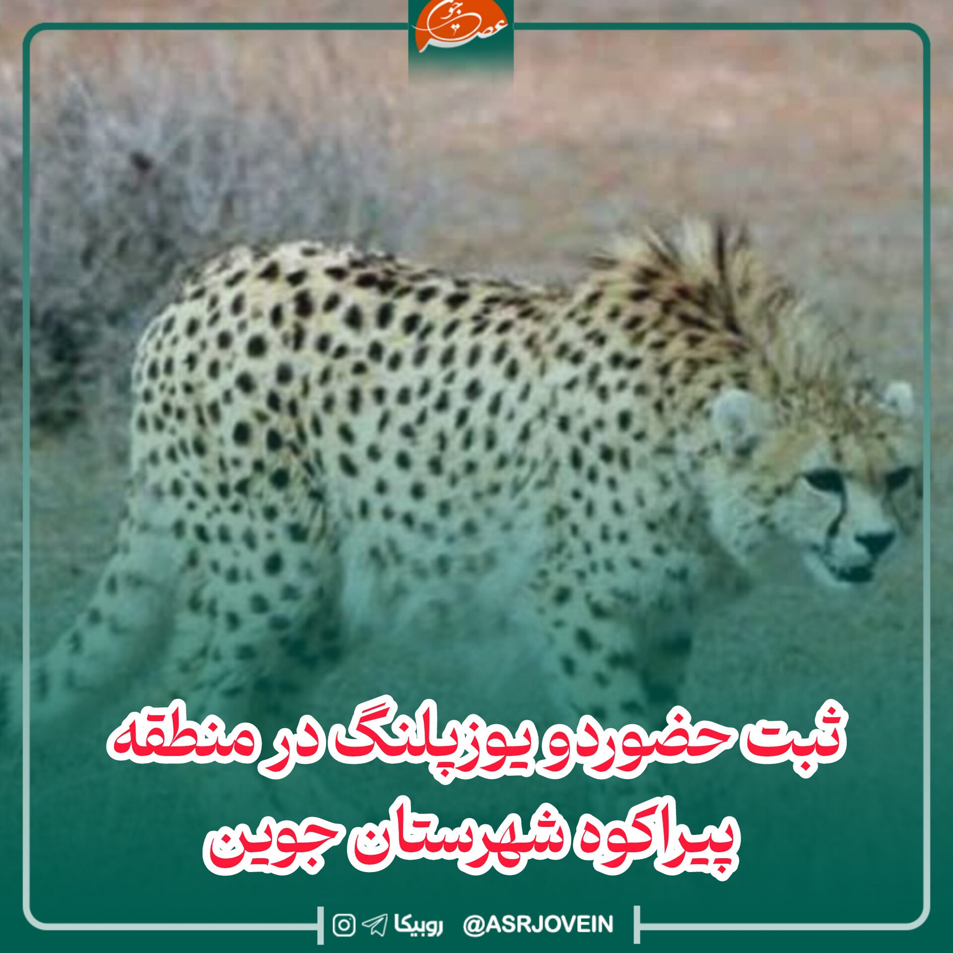 برای نخستین بار در شهرستان جوین، دو قلاده یوزپلنگ آسیایی در محدوده یوسفآباد پیراکوه مشاهده و تصویربرداری شدند؛ اتفاقی نادر و امیدبخش که از تداوم زیست این گونه در خراسان رضوی حکایت دارد.